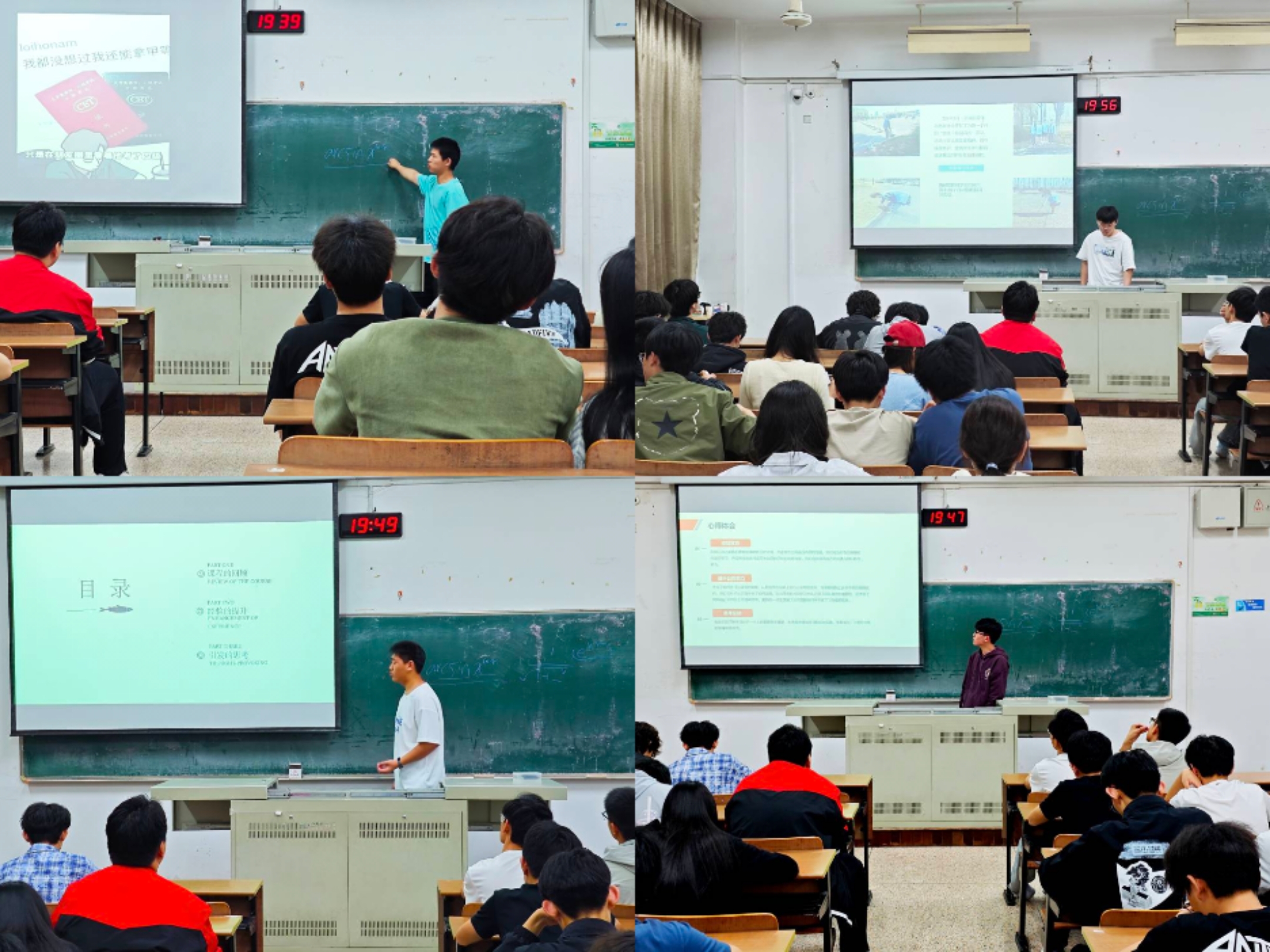 第五课是优秀学员发表心得体会,由院青年学习社负责,从二级团校四次课程的学员中挑选了四名优秀学员参与分享,优秀学员电气231王振南,机制233张星宇,装备231高乐和电气232时梓航针对自身在课程中所学的经验技巧、所提升的相关能力、所引发的思考等展开了精彩汇报。